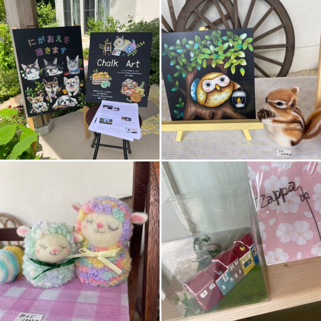 初めての出展者さんも、思わず欲しくなるかわいいチョークアートや、フェルトの動物が可愛かったです。