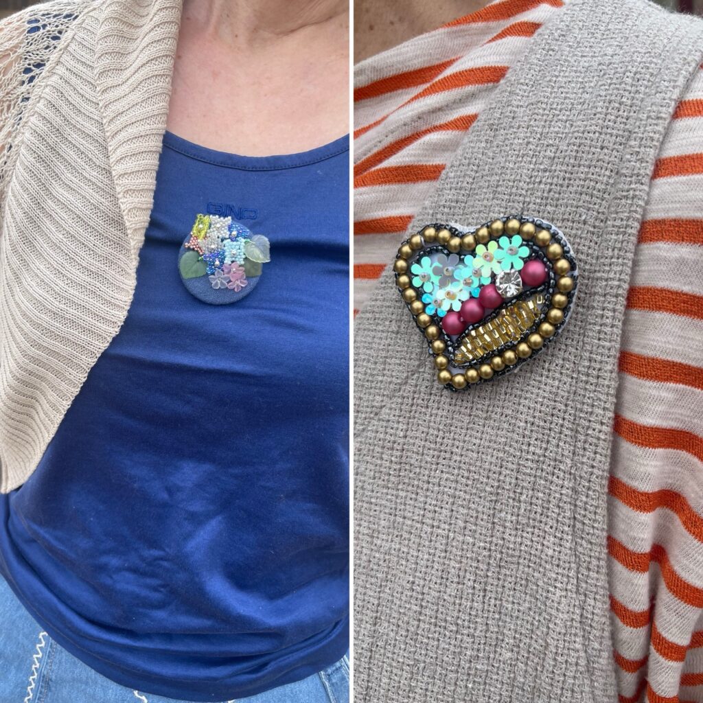お二人ともぴよこ先生のビーズ教室で作られたブローチ、綺麗ですね。