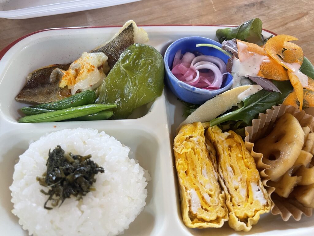 今日のはらっぱ弁当は白身魚の塩麹漬け。