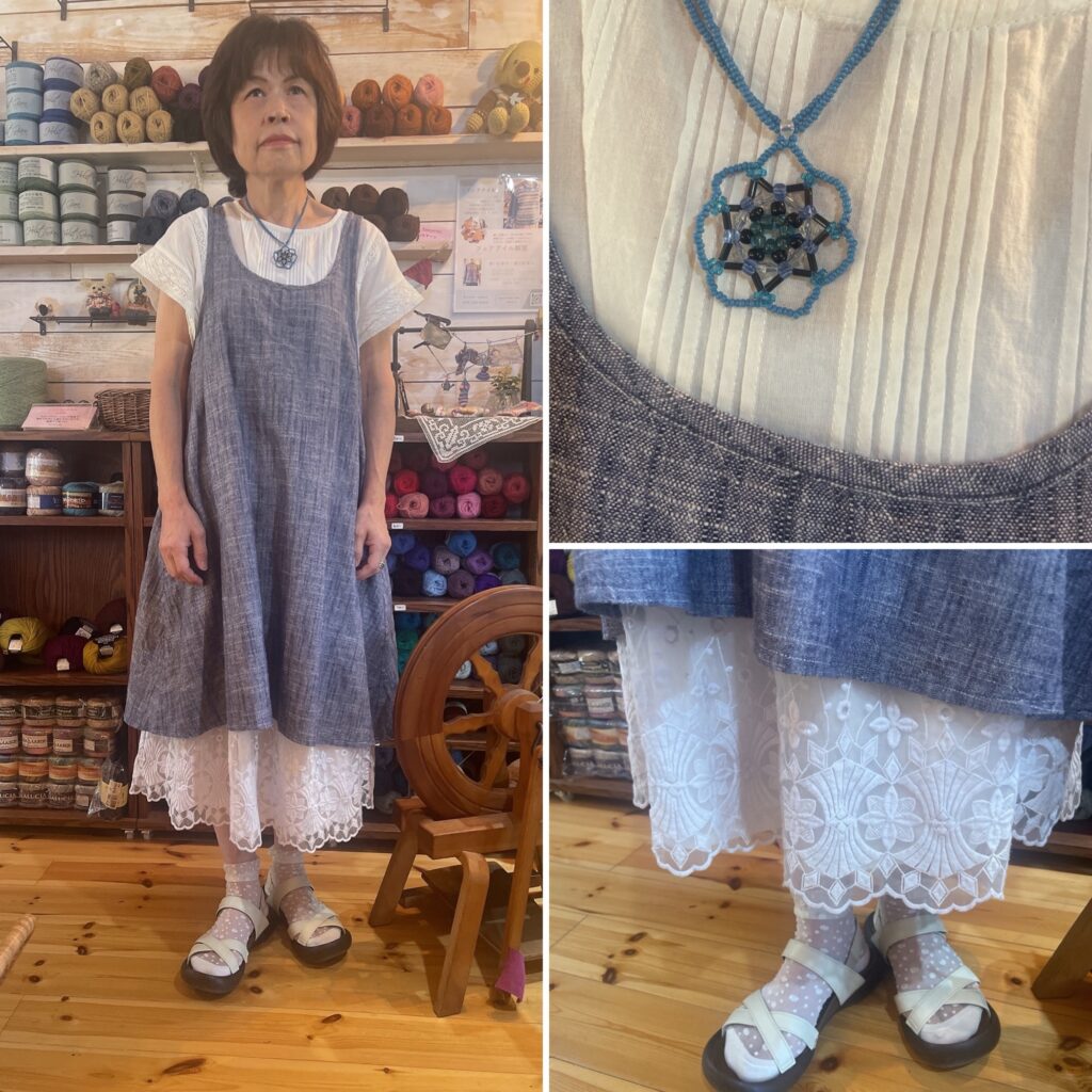 重ねてもとても涼しい素材なので快適ですね。ネックレスもワンポイント。