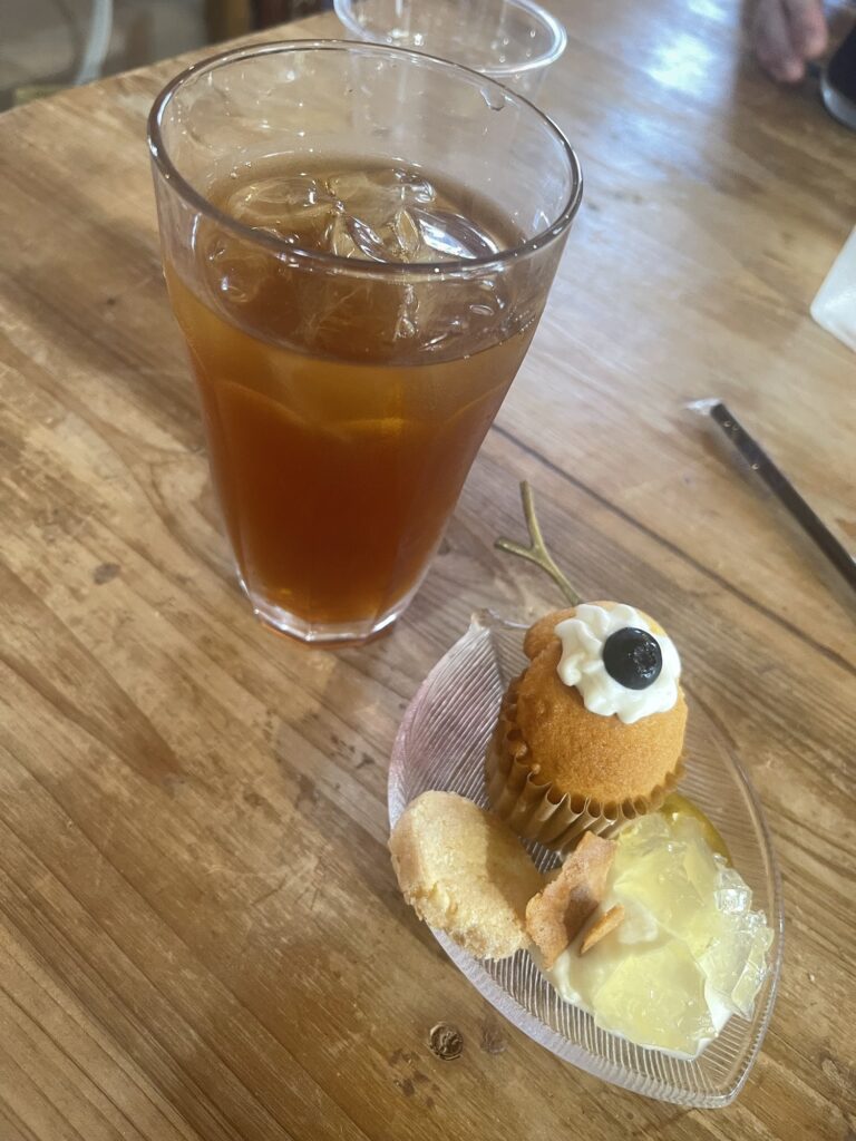 今日のおやつはかわいいカップケーキとゼリー。最高!