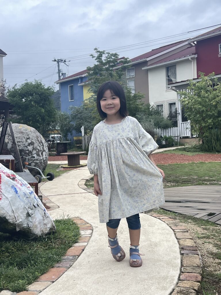 うーちゃんは、まおちゃんが作ってくれたワンピースです。ちょうどいい大きさになったね。