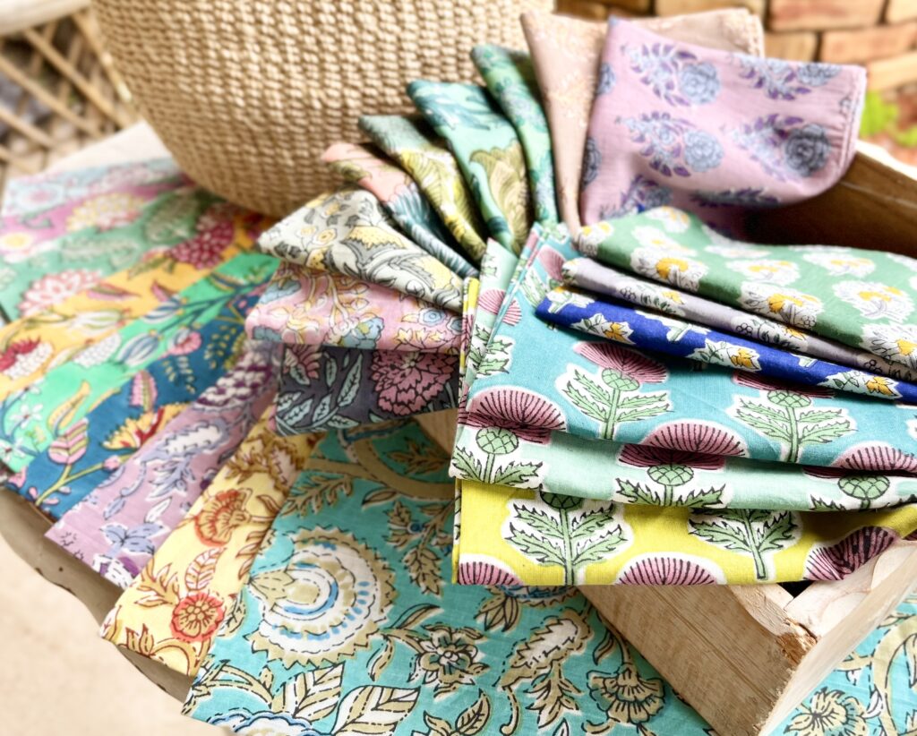 『ブロックプリント』という技法で作られた、インド綿100%の大判ハンカチが入荷してきました!