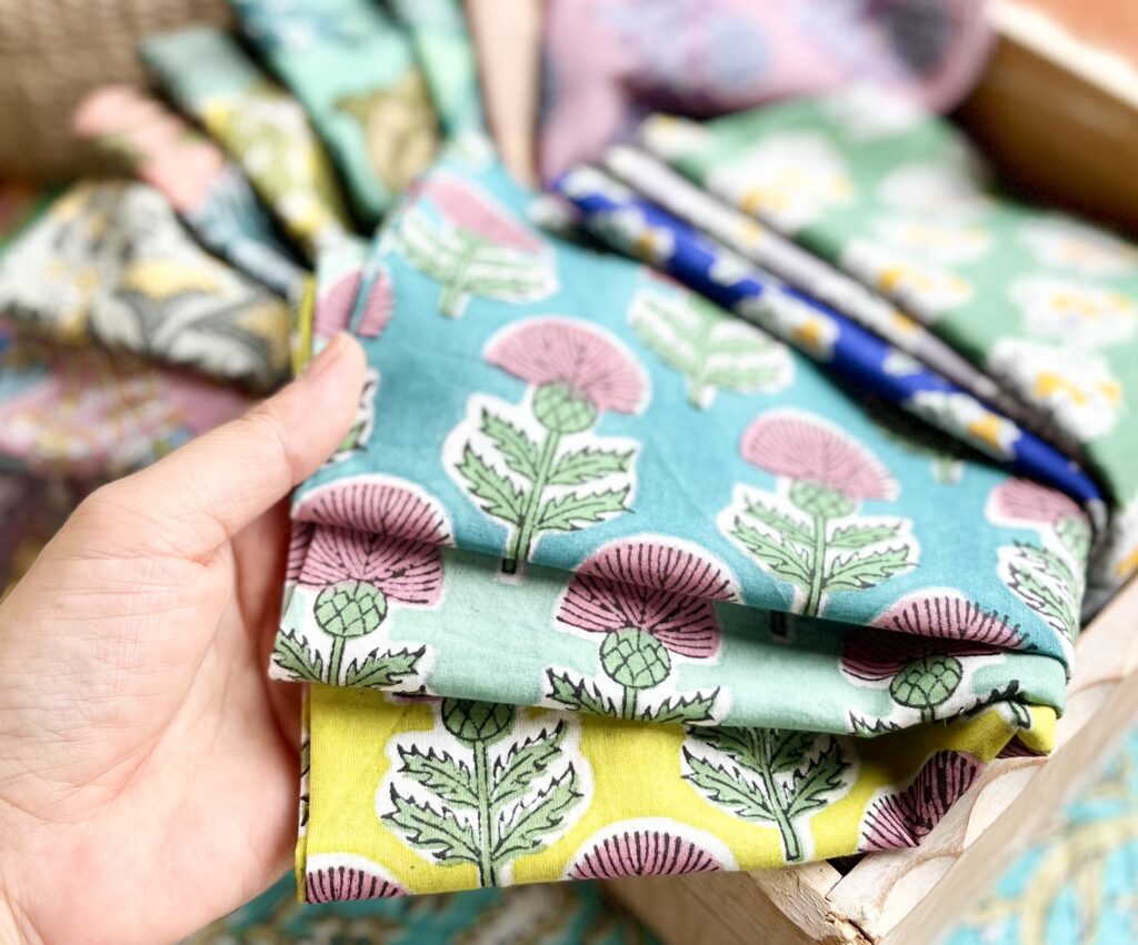 繰り返しの手作業による繊細な仕上がりが、世界中で愛されている理由のひとつ☝️機械プリントでは味わえないぬくもりを感じられるのもブロックプリントならではの魅力ですよ。