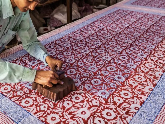 富木や竹などの硬い木製の版を使って生地に模様を印刷するインドの伝統的な技法で、その歴史は数世紀にも渡って続いているんだとか。