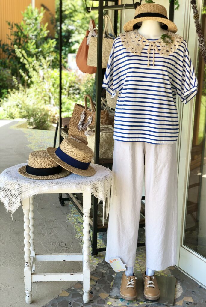 こちらは透けない白のパンツと麦わらカンカン帽でさわやかに☺️!