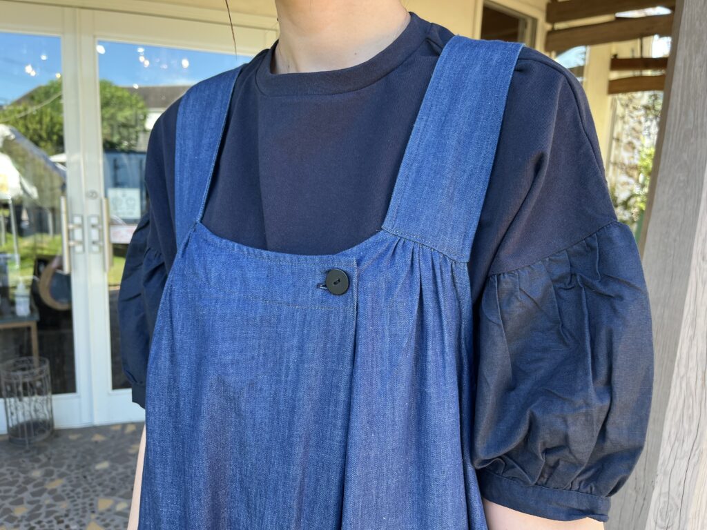 さてお次は、ポワン袖の異素材プルオーバーとオーバーオール💙