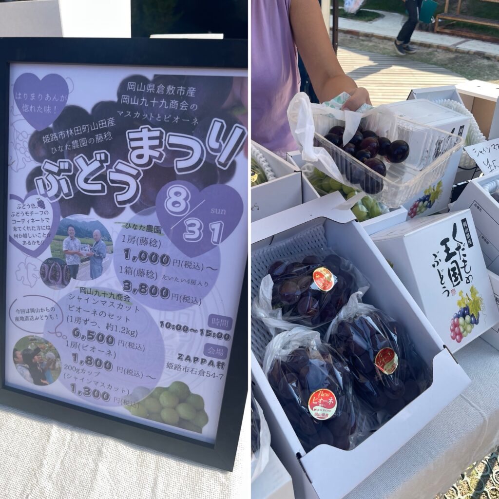 うーちゃんが大好きなぶどうをいっぱい買って大満足。はらっぱでも美味しいスイーツ食べれるかな?
