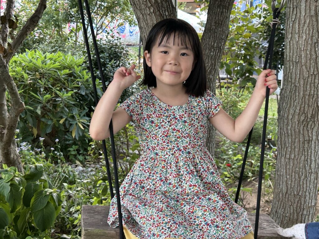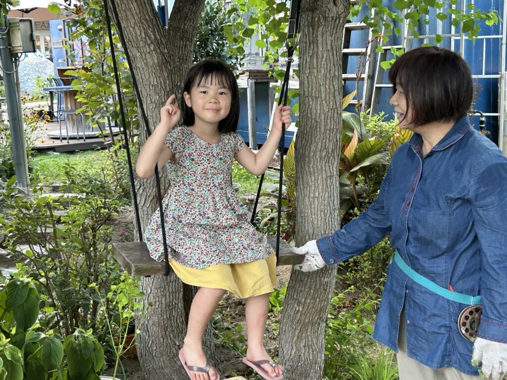 ナンキンハゼの木にぶら下げたブランコで遊ぶうーちゃん。
