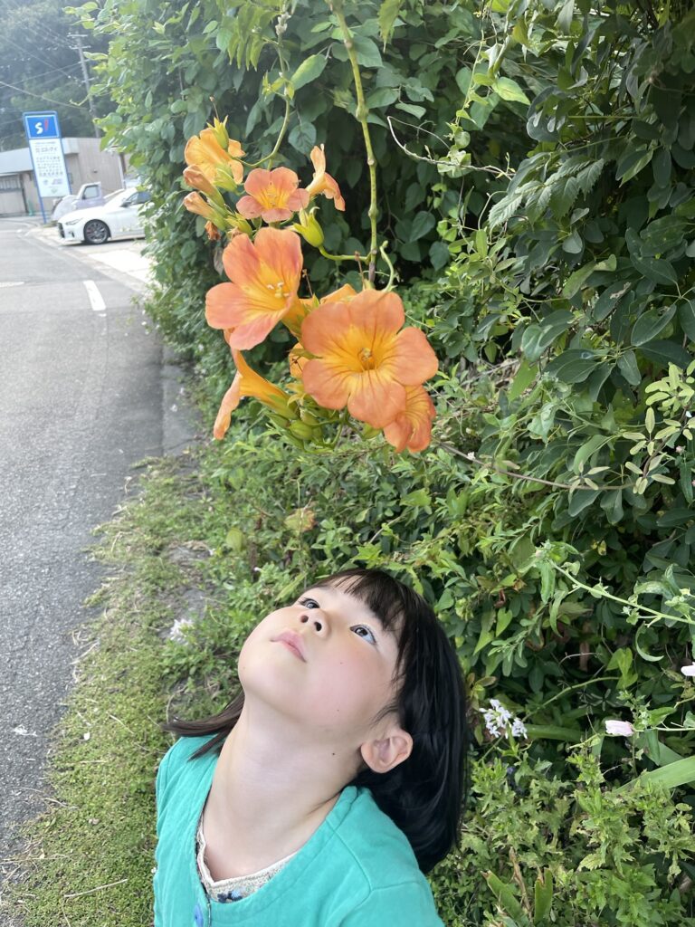 お隣に咲いてたノウゼンカズラ。綺麗なオレンジ色