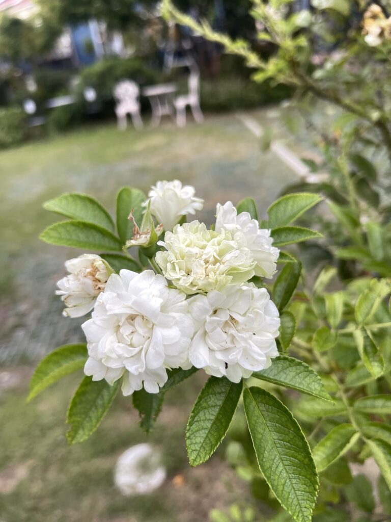 白いバラホワイトグルテンドルストがかろうじて咲いてます。