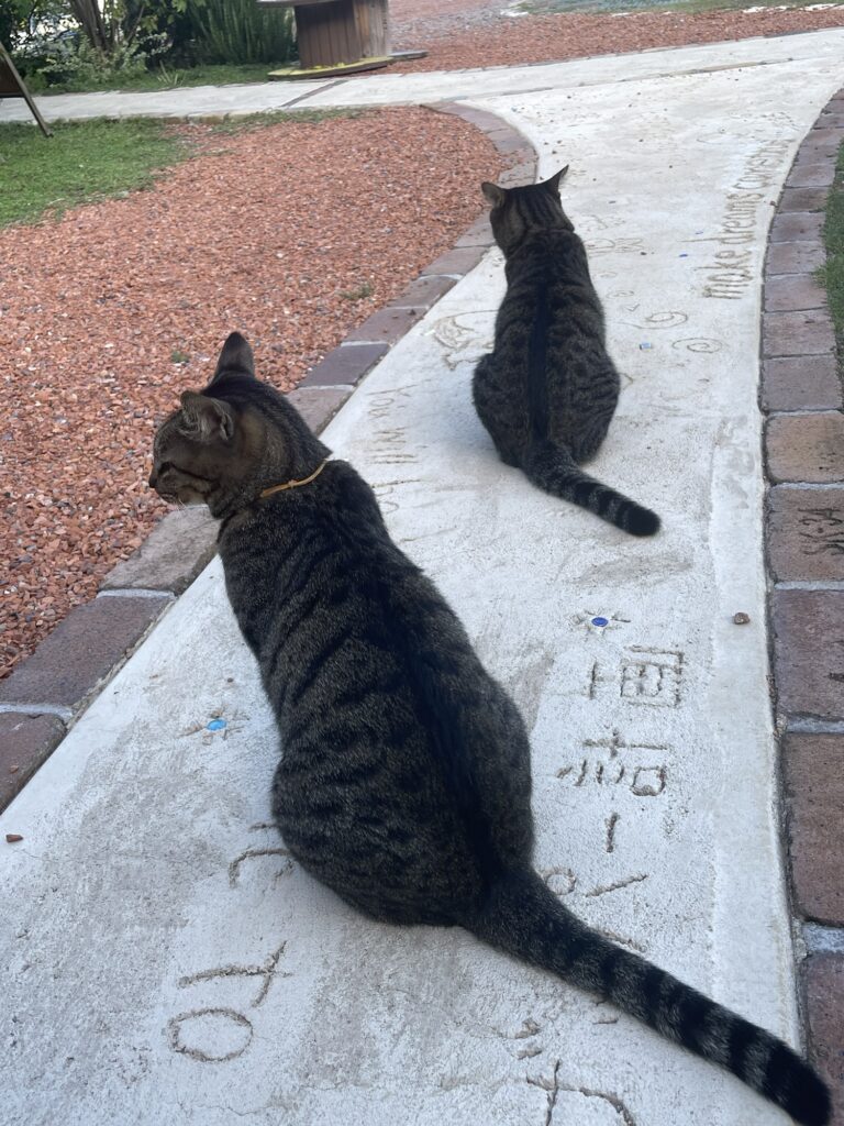 夕方にはいつも2匹でお庭で戯れあってます。