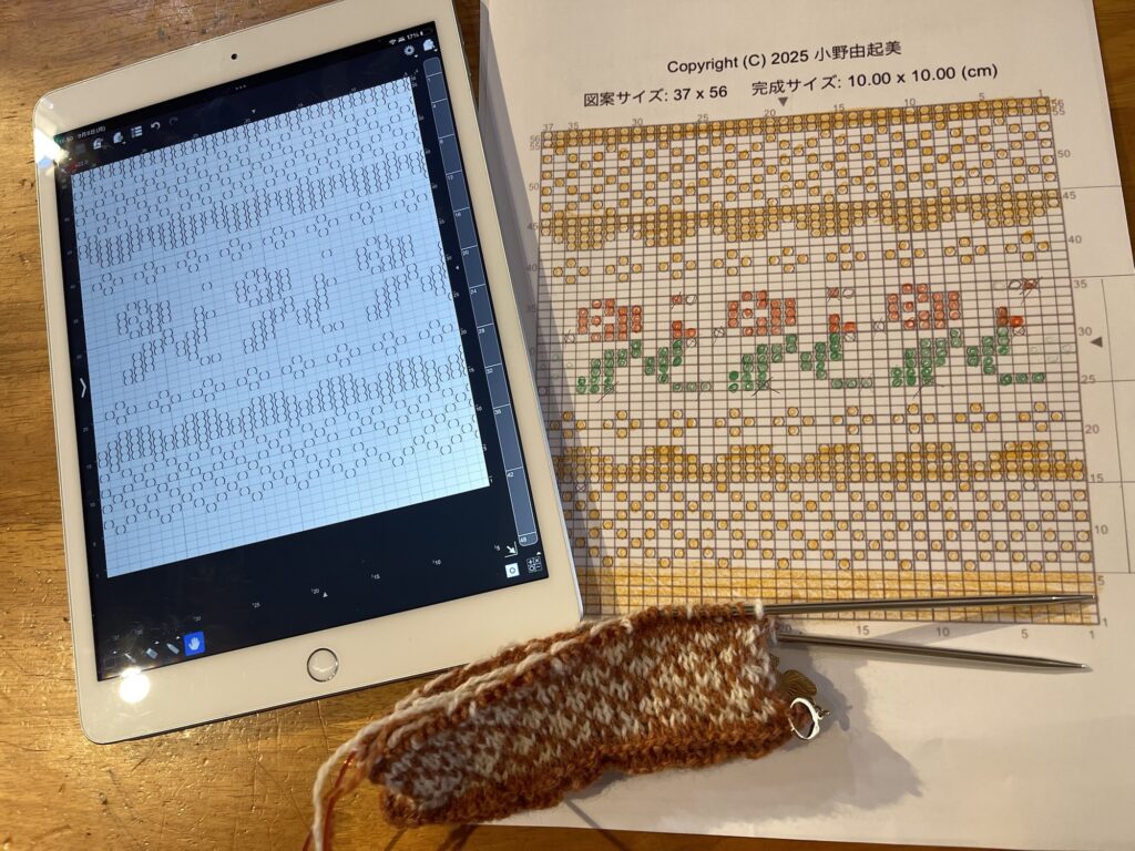 最近フェアアイルなどの編み込み模様が楽しくて、久しぶりに、タブレットで模様を作ってみました。印刷して、色鉛筆で軽く塗ってみました。こうしておくと編みやすいなあ。