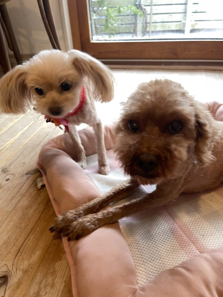 わんこたちは私が構ってくれるのをそばでじっと待ってます。