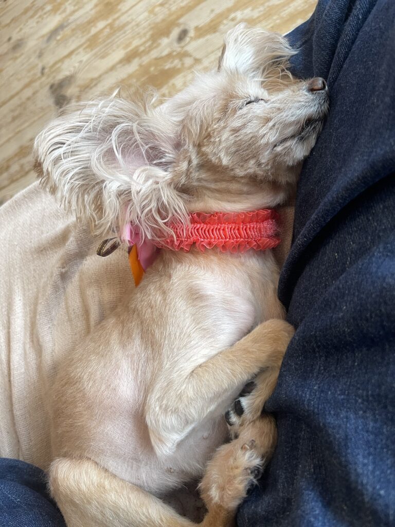 歳をとって痩せて背中の骨がゴリゴリになったなあ。長生きしてね。