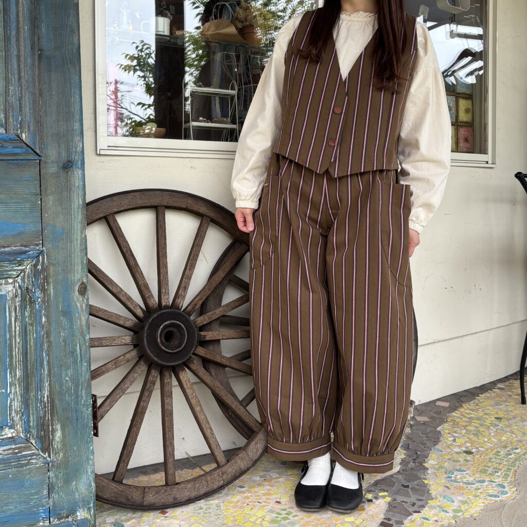 丸みのあるパンツシルエットが可愛らしく、ベストを合わせれば統一感のあるコーデに😌