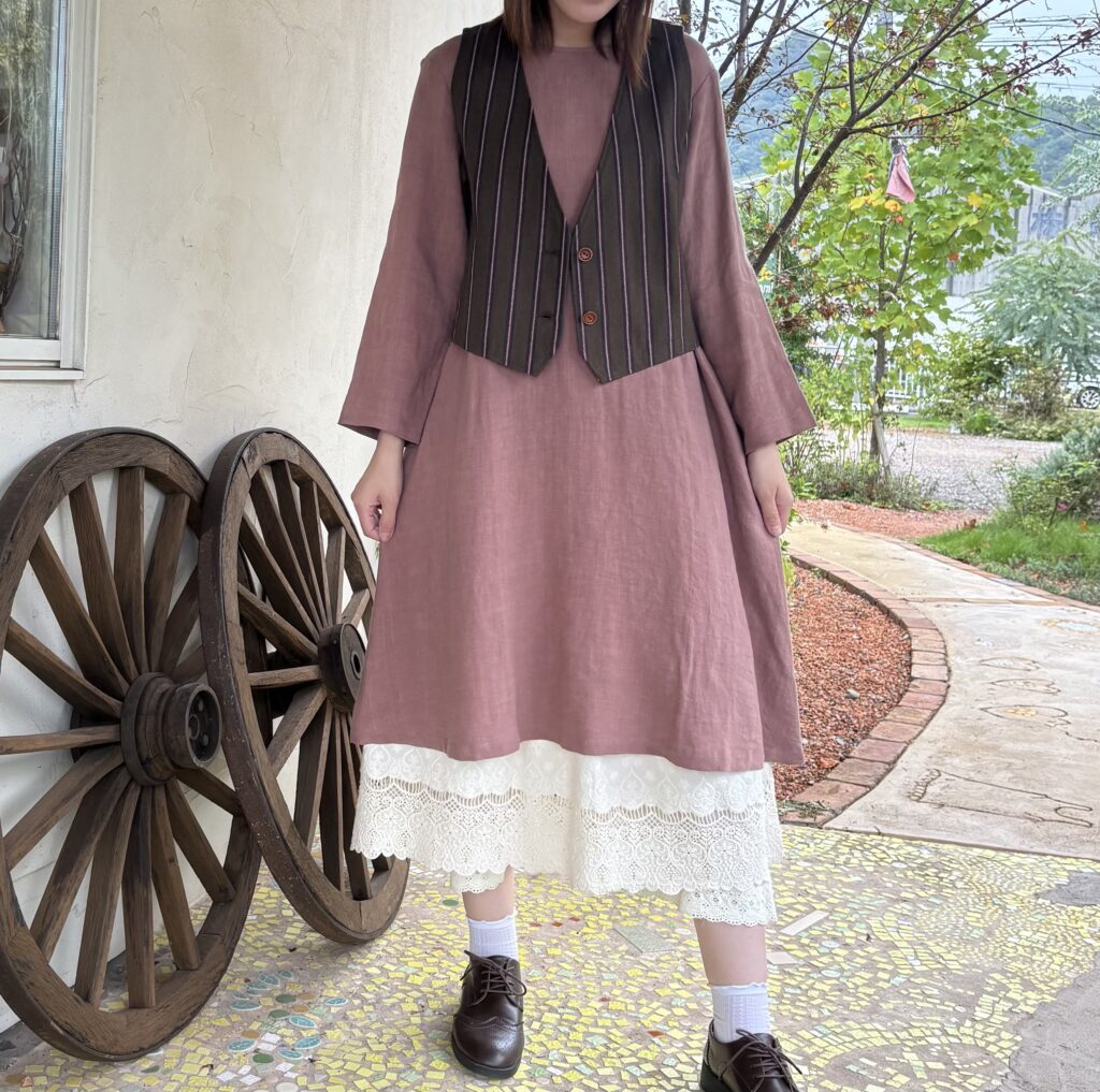 私(身長169㎝)は、きちんとさんワンピと合わせてみよう!ベストを足すだけでおしゃれ度アップ😆