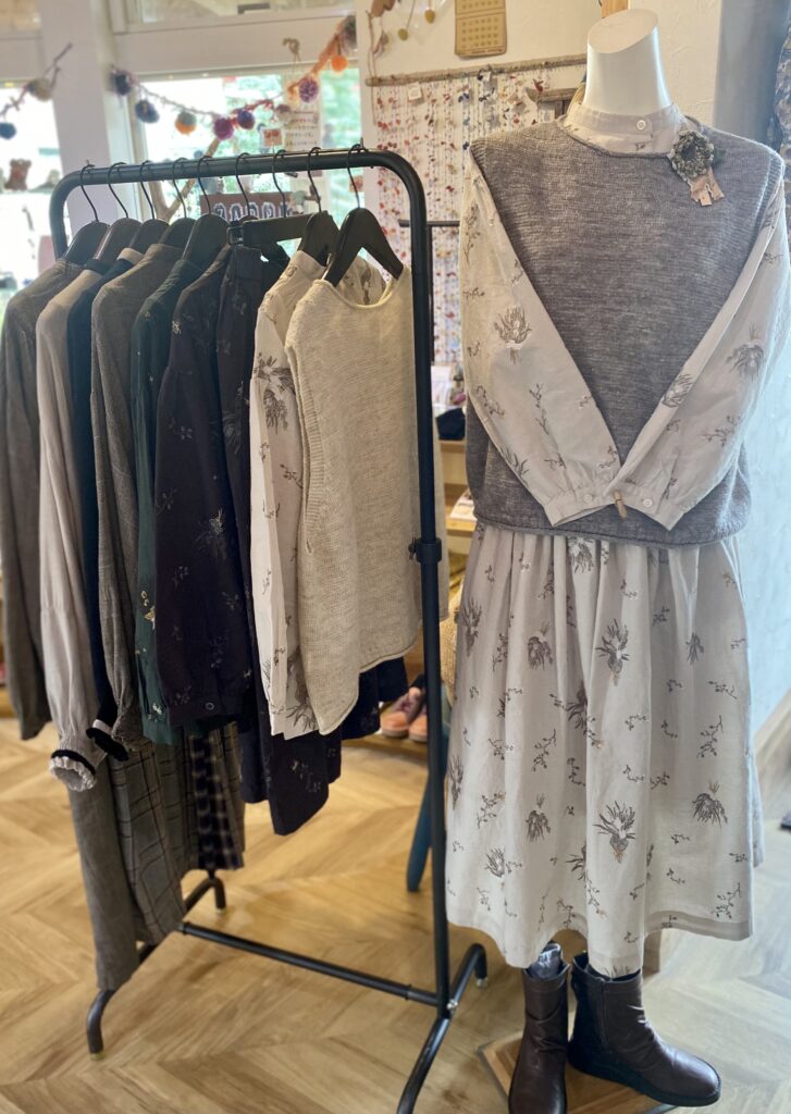 tukuroiの刺繍ブラウスと刺繍スカートにニットベストを合わせて、ワンピース風に着せてみました!