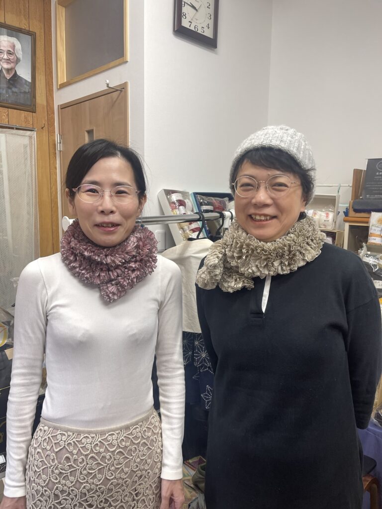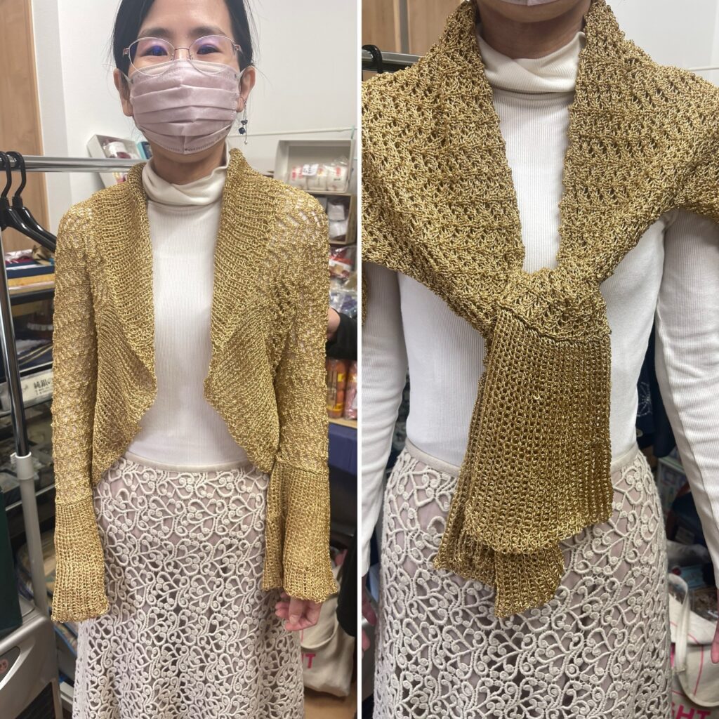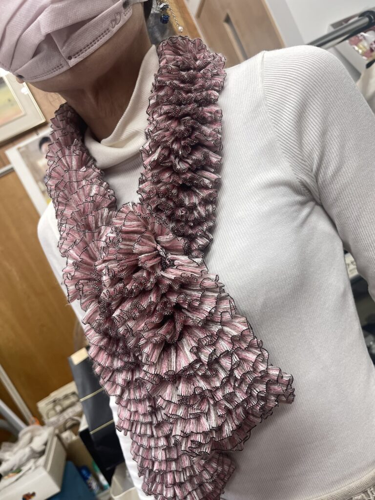 リボンのような豪華なストール。編んでるとは思えないでしょ。