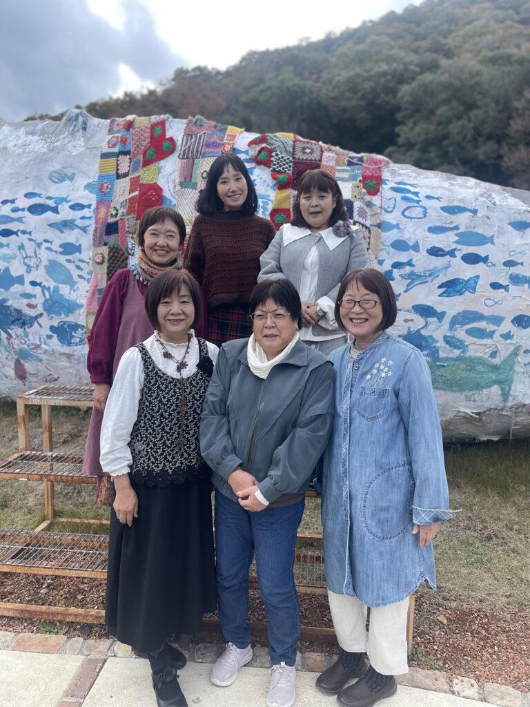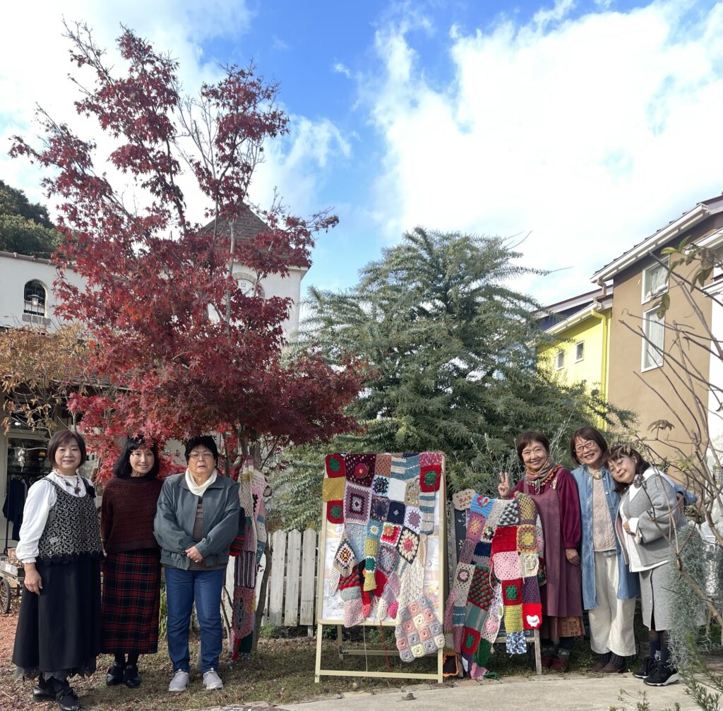 クジラにはみんなが編み繋いだモチーフをかけてます。みなさん毎年素敵な作品を編んでくださってます。