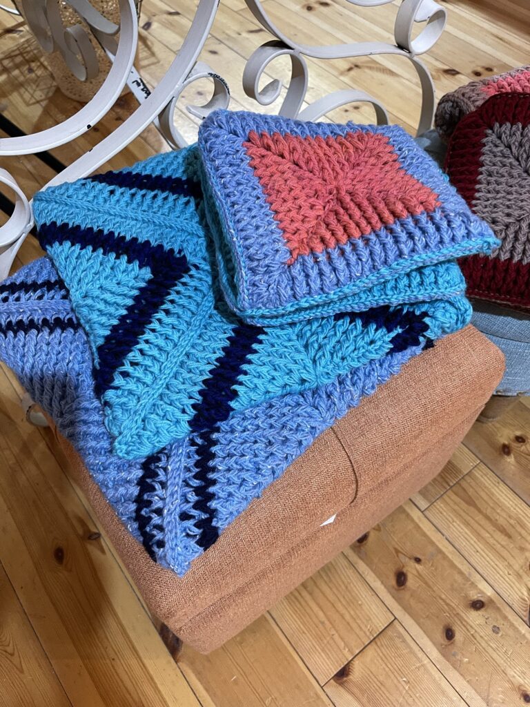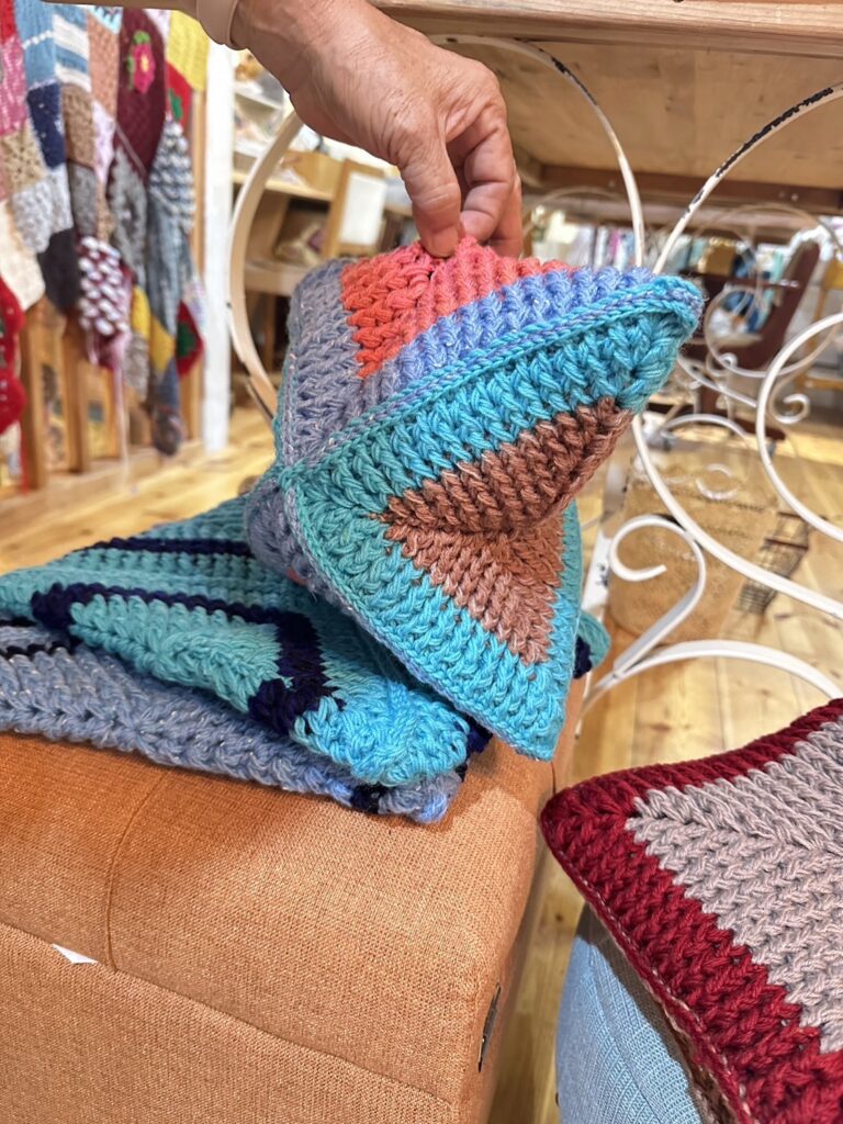 みんな頑張ってたくさん編んでくださったので、ものすごい数で、一日中かかりましたが、スタッフの真央ちゃんのおかげで、なんとかディスプレイできました。