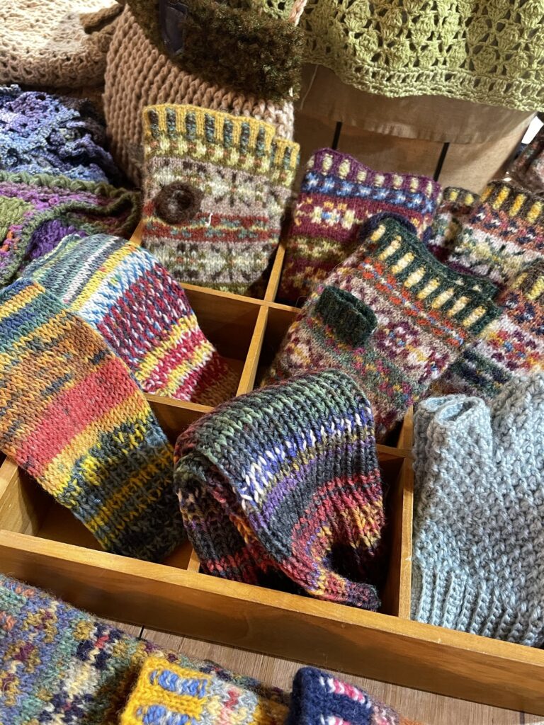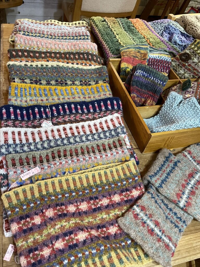 フェアアイルのスヌードとハンドウォーマーは色に溢れていて、圧巻です。