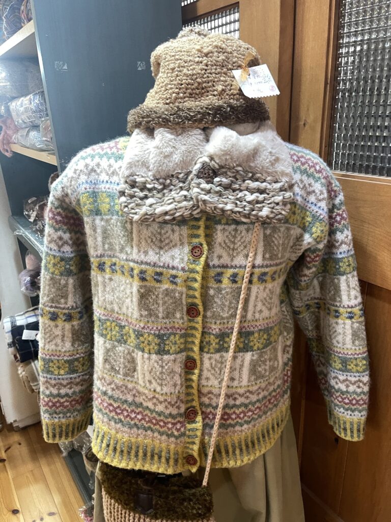 フェアアイルのカーディガンは販売用ではありませんがファー付きストールや、帽子は色違いもあります、
