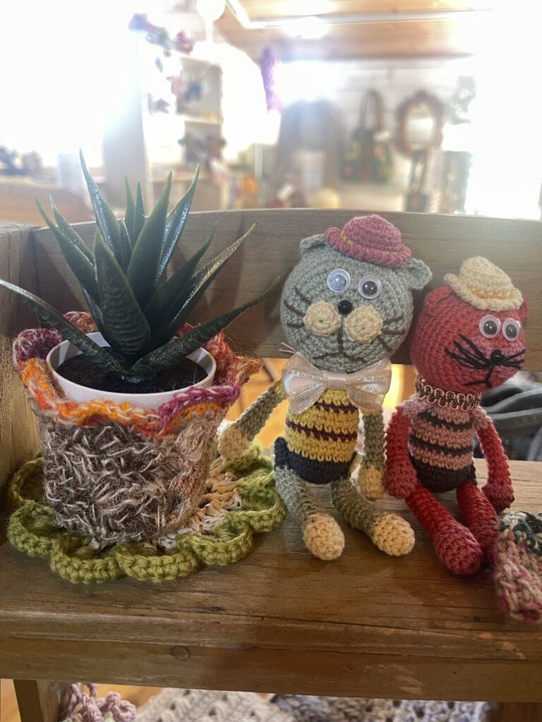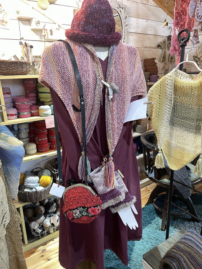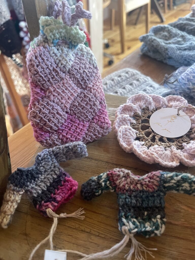 ミニミニセーターのブローチや、アフガン編みのミニポーチ。