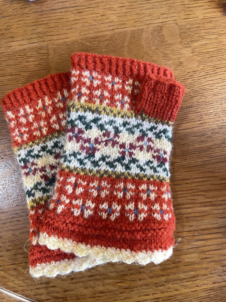 フェアアイルのハンドウォーマーもかわいい色が届いています。