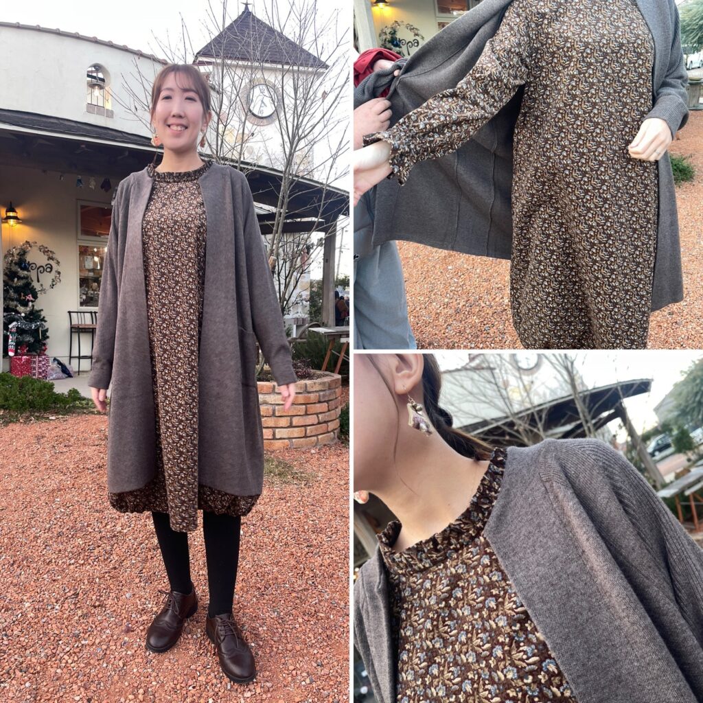 以前テディの糸で編まれた、ベストがとっても可愛かったです。インナーに着た七変化ワンピのレースがいい具合に見えて素敵でした。