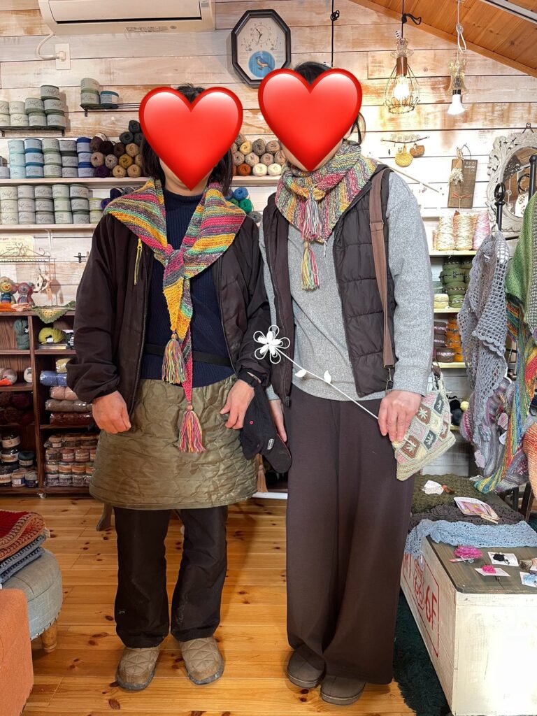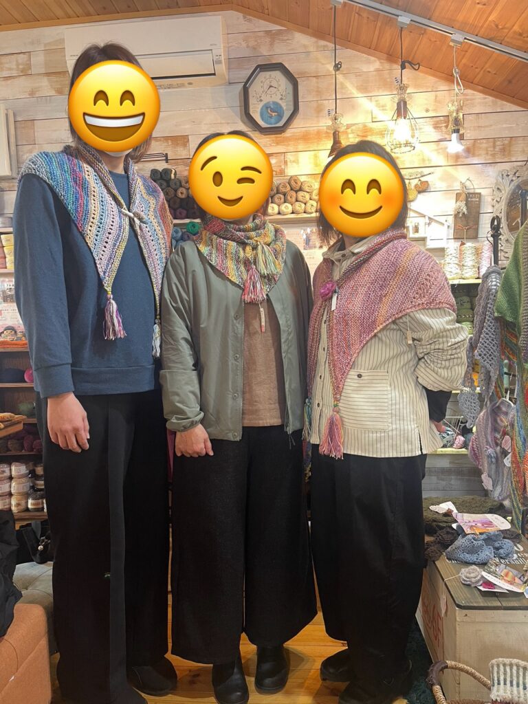 みなさんストールを巻いてみて下さいました。いろんな巻き方を楽しめます。