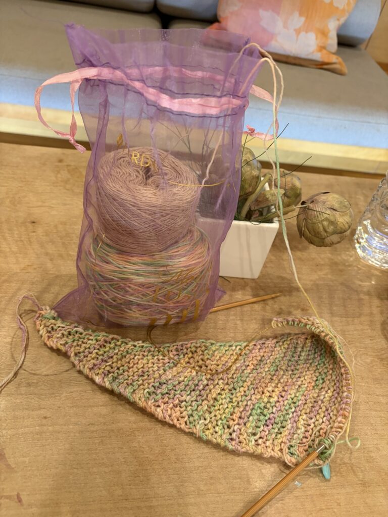 新幹線の中で編んでたストール。