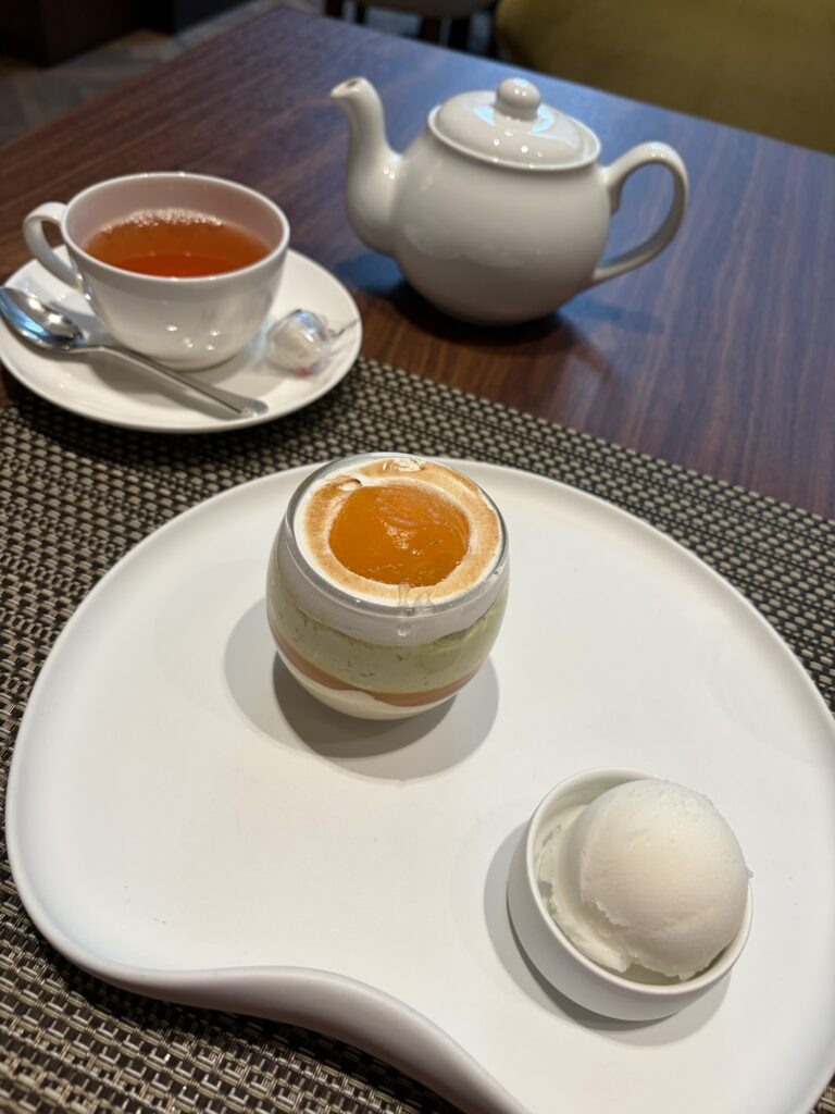 いちごの紅茶と、アンズとピスタチオのムースで、一旦甘いものを入れとこう。