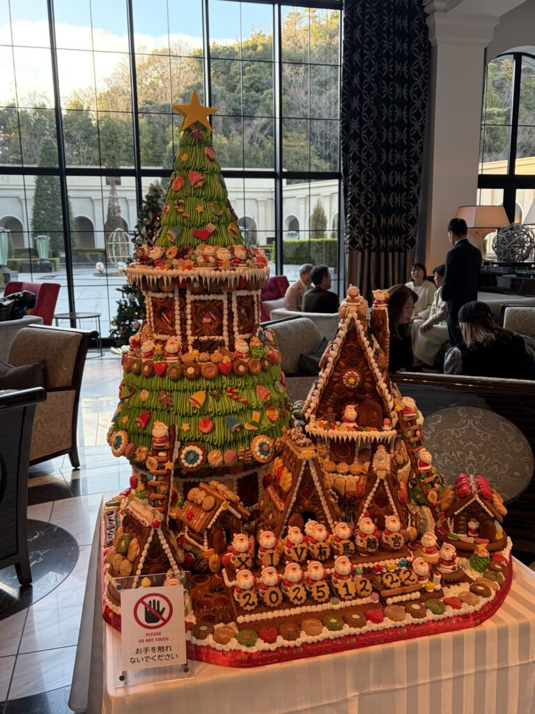 有馬エクシブに着いたら、かわいいお菓子のお家がお出迎え。よくできてる。