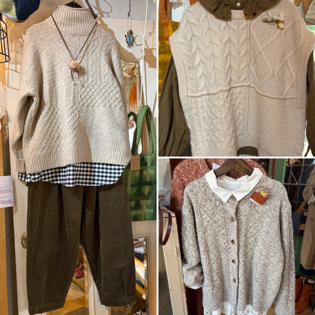 編み地のおしゃれなニットもいろいろ揃ってますよ。