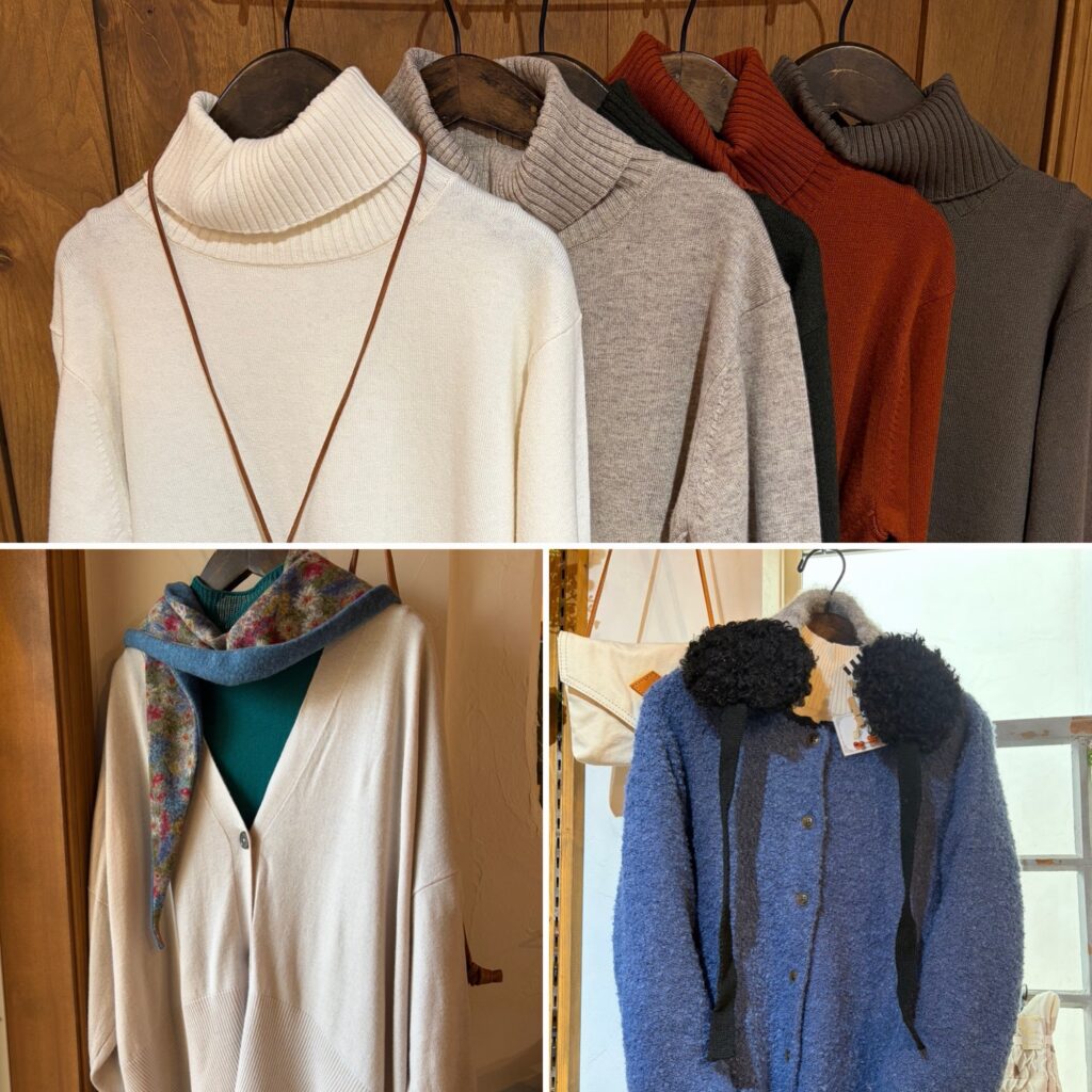 組み合わせ便利なタートルやカーディガン