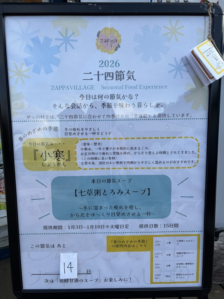ザッパ村は年明け3日から営業しています。寒い毎日ですが、はらっぱカフェであったまって行ってくださいね。