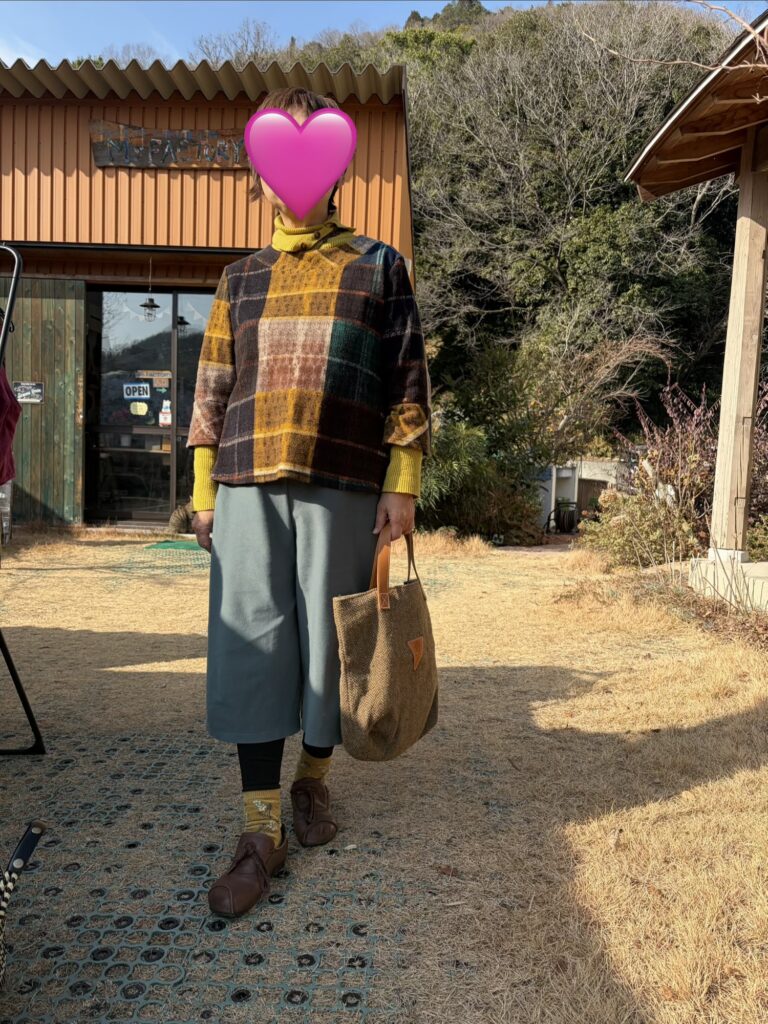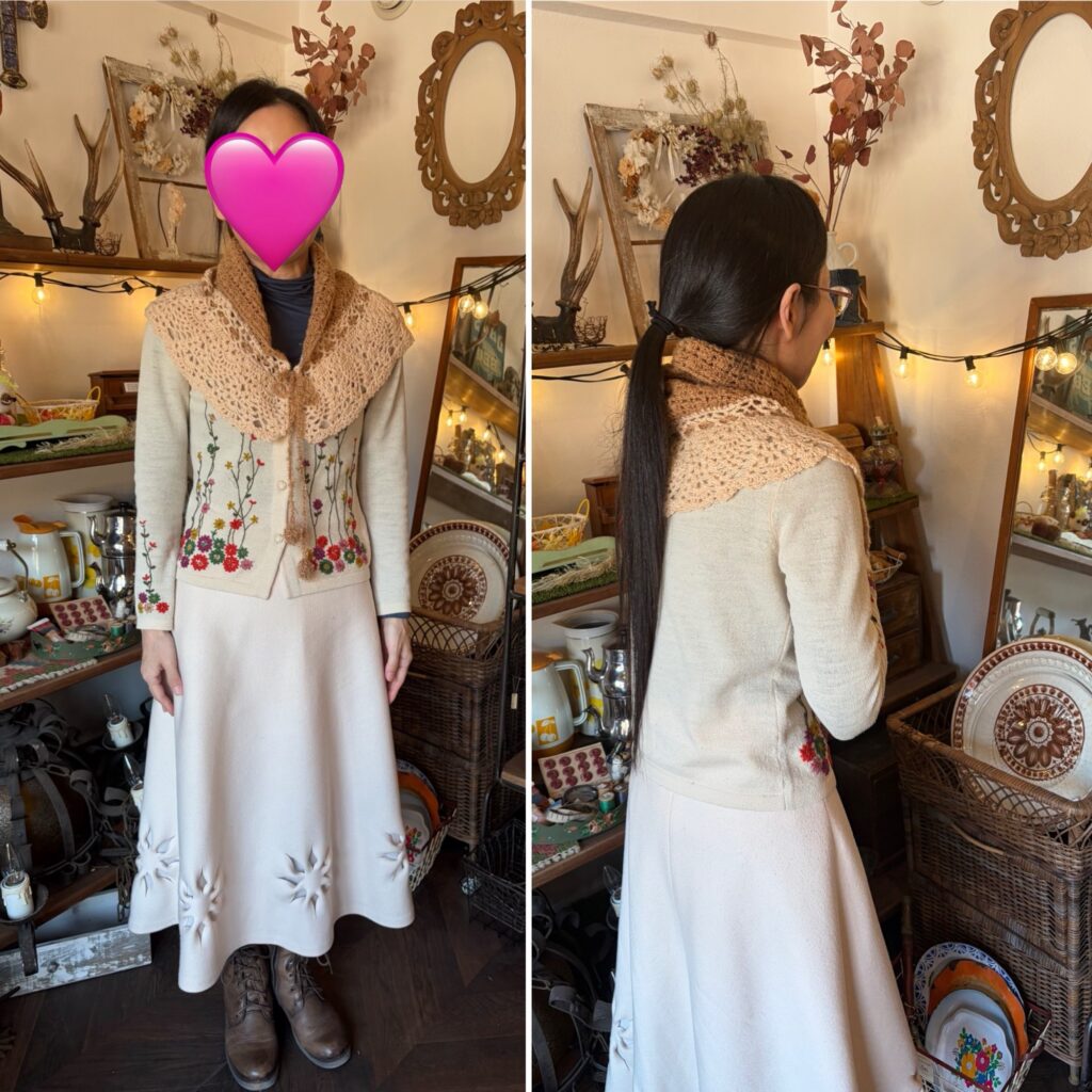 古道具ちくりんに遊びにきてくれたけいこさん。今日も素敵なファッション。