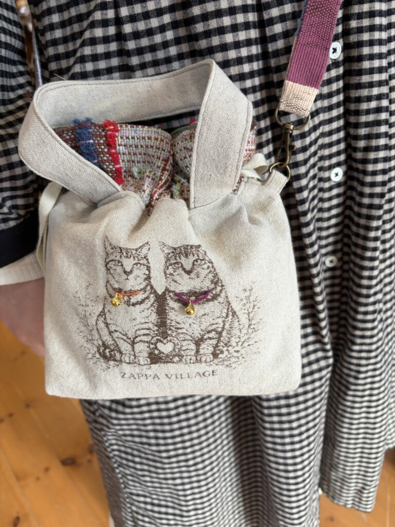 てことぽこモデルのかわいいポーチができました。もう少し改良を加えて販売するそうです。さおり織がアレンジされていておしゃれ。