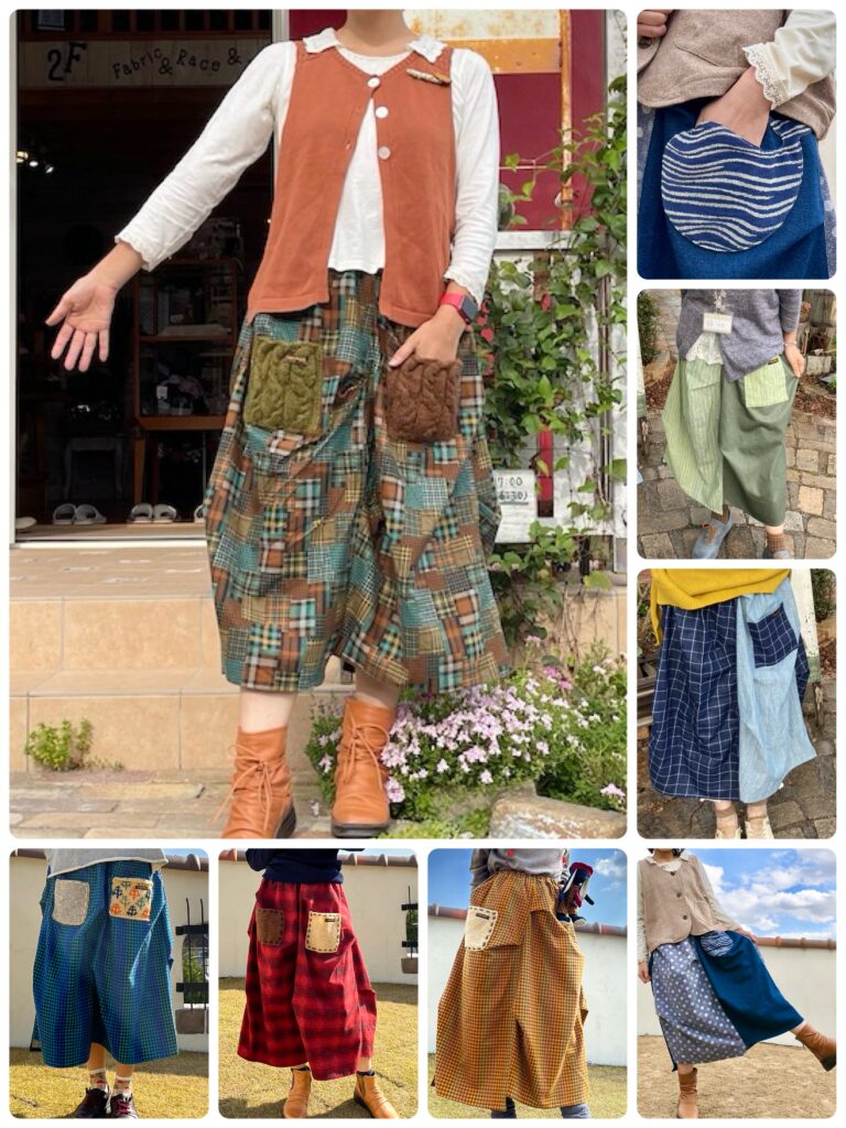 波ジャガード生地でくじらポケットにしたり、手編みのポケットをつけたり、草木染めなんかもあったなー☺️
