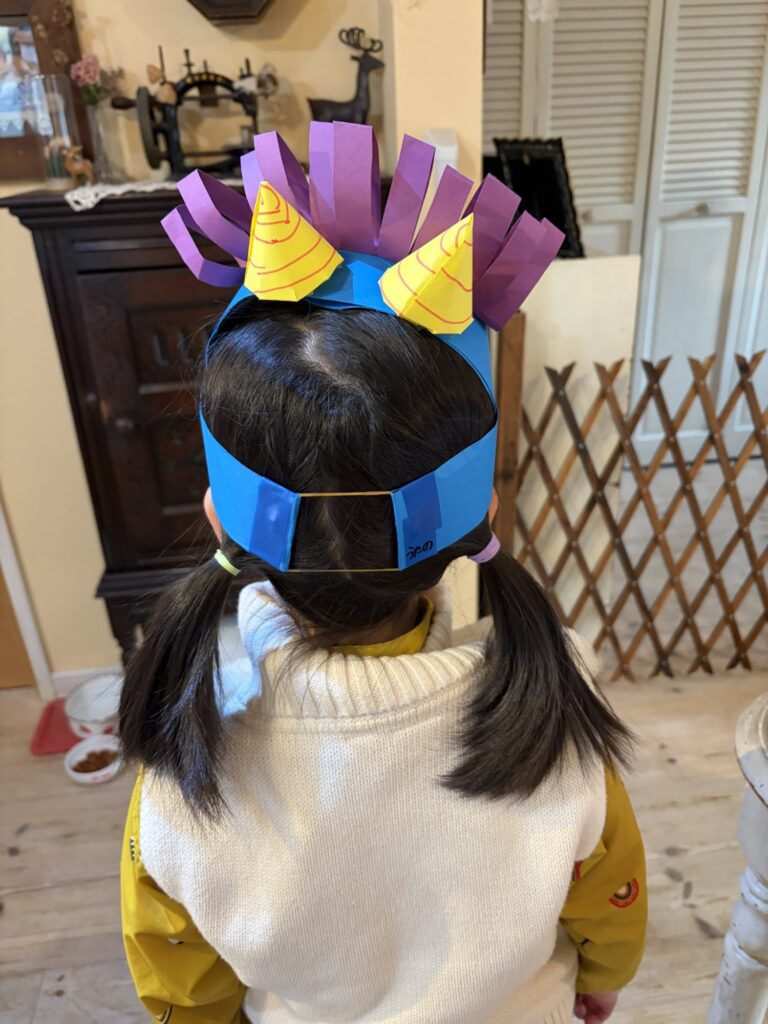 うーちゃんは子供園で鬼の面を作ったんだって。