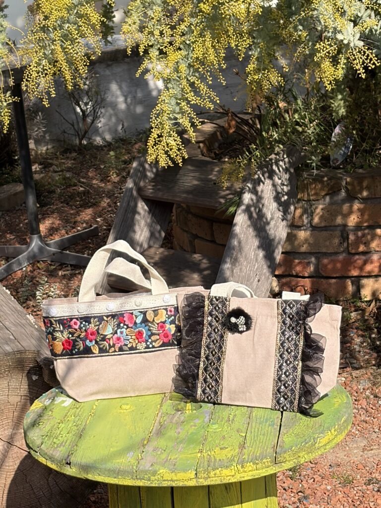 ブラーノザッパのワークショップで、作ってもらえるバッグのサンプルができました。素敵でしょう。
