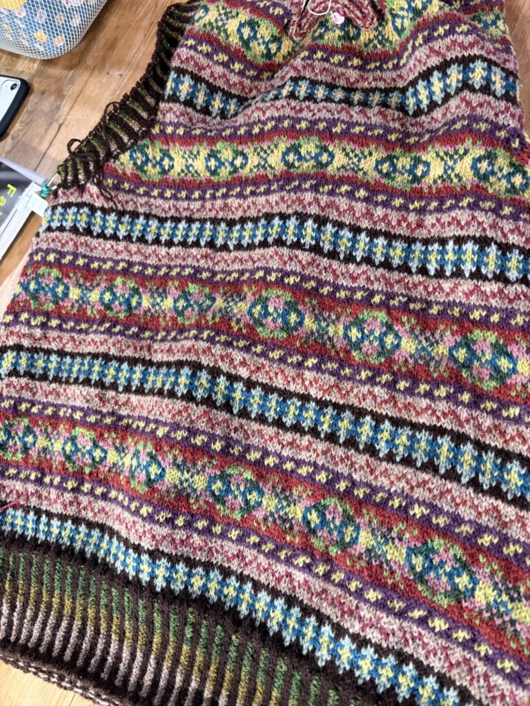 いよいよ袖口の二目ゴム編み止めです。