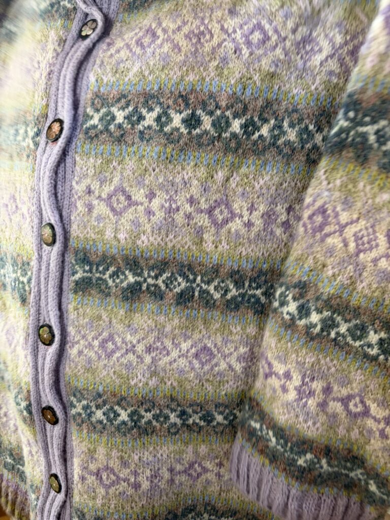 素晴らしいカーディガンが編み上がりましたね。ラベンダー色が素敵💓