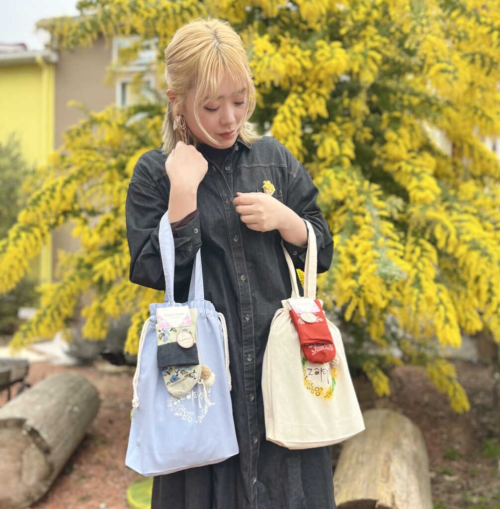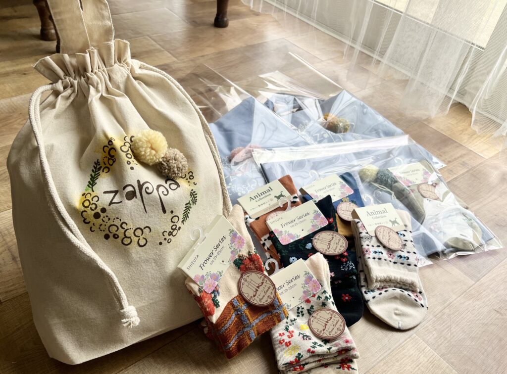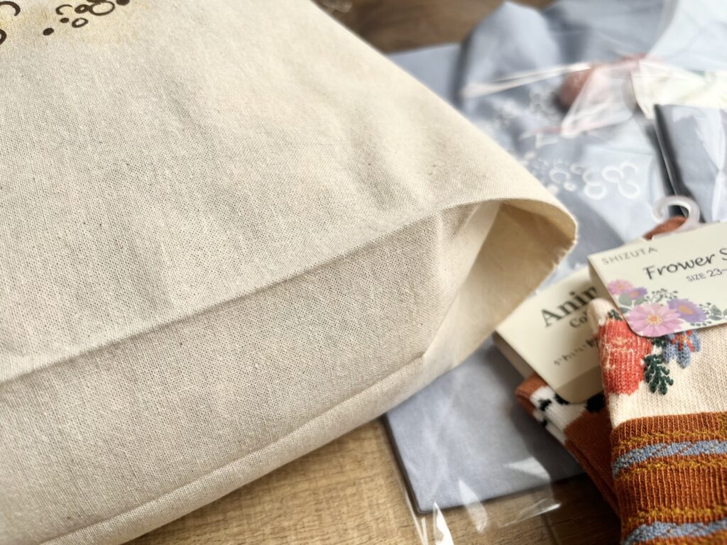 ご購入金額5,000円以上(レシート合算OK)で、この巾着トートと靴下をなんとセットでプレゼント〜🎁