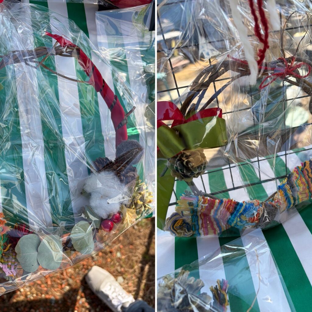 ビールのポップで作ったリースもさおり織が付いていてかわいかったです。