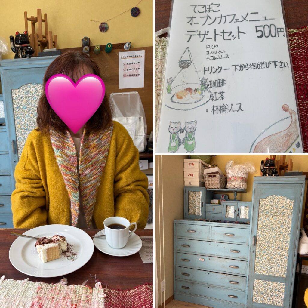 テコポコでもカフェをしていて、手作りのケーキが豪華で美味しかったです。