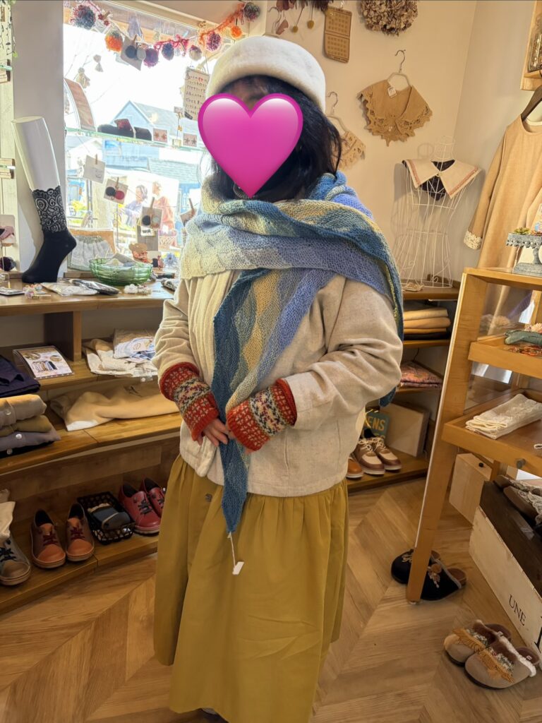 波模様のストールは黄色いスカートによく似合ってました