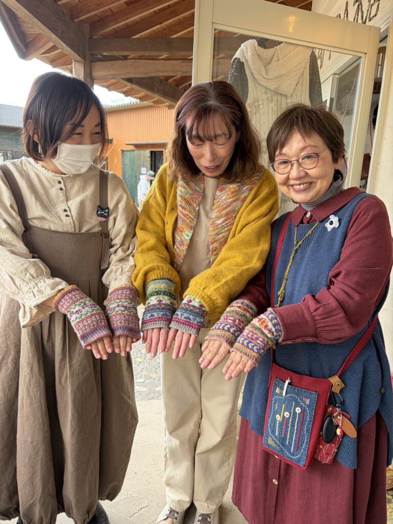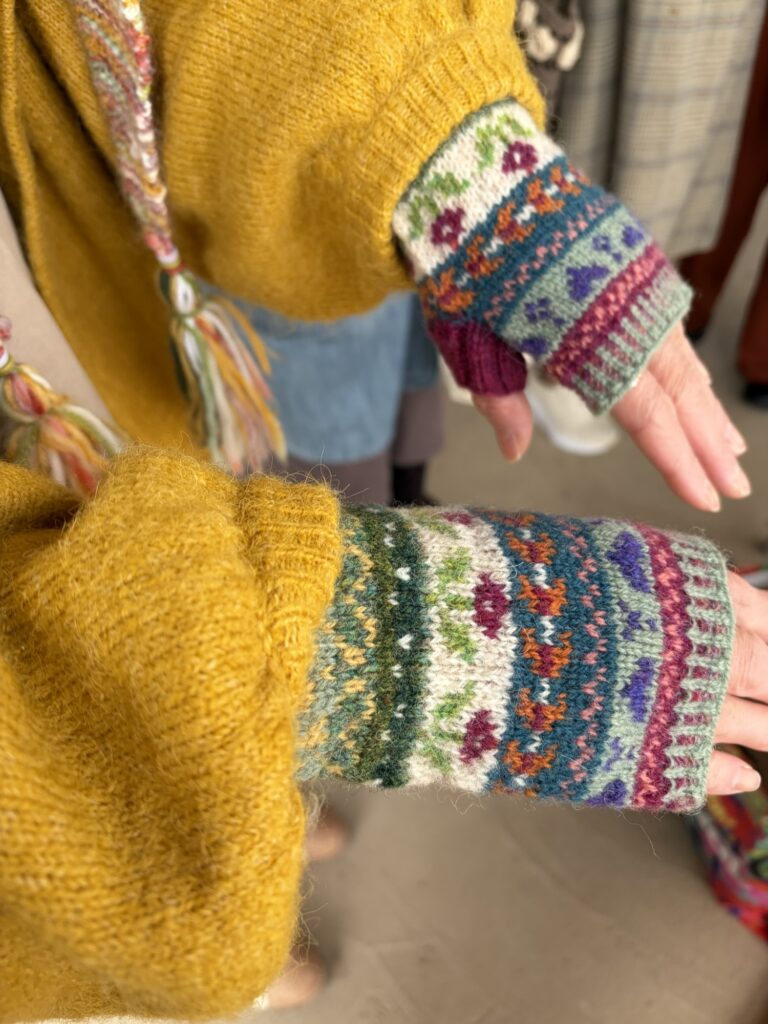 今日も編み込みのハンドウォーマーは人気