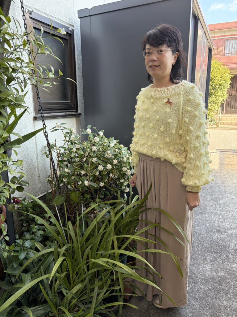 あきこさんは黄色いモヘヤのセーターが春らしくて素敵でした。